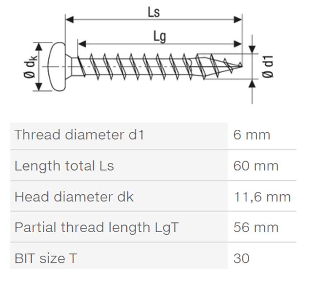 SPAX vis a bois 6x60 tete demi-ronde TXS,W,4C