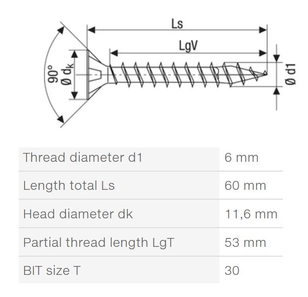 SPAX vis a bois 6x60 tete fraisée TXS,W,4C MH