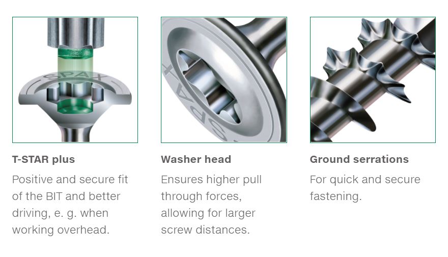 SPAX vis a bois 8x140/80mm tete plate TXS W 4C filetage partiel