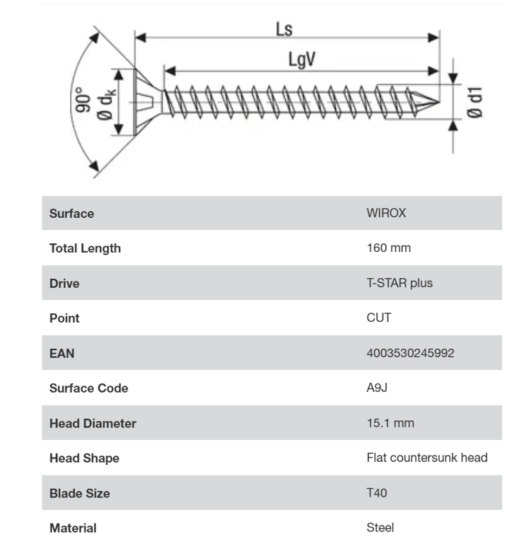 SPAX vis a bois 8x160 tete fraisée TXS,W,4C MH, filetage total