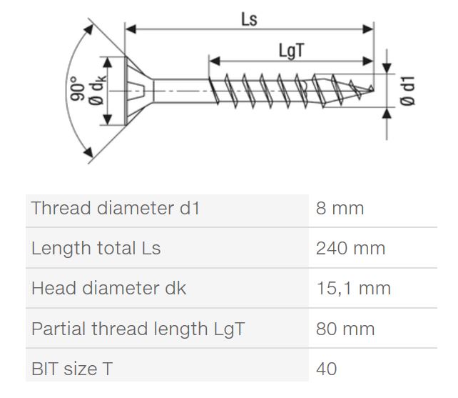 SPAX vis a bois 8x240/80mm tete fraisée TXS,W,4C MH filetage partiel