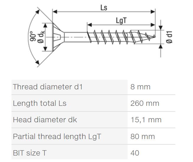 SPAX vis a bois 8x260/80mm tete fraisée TXS,W,4C MH filet partiel