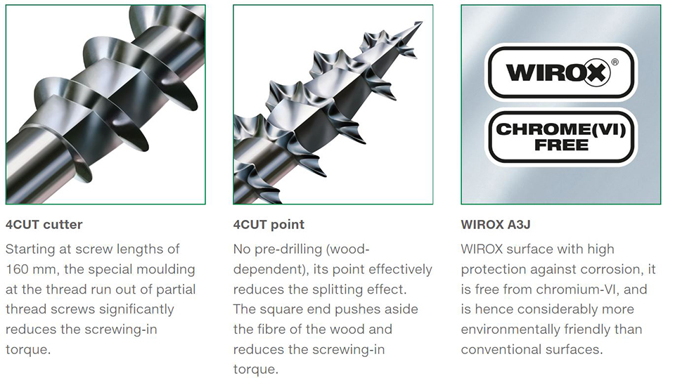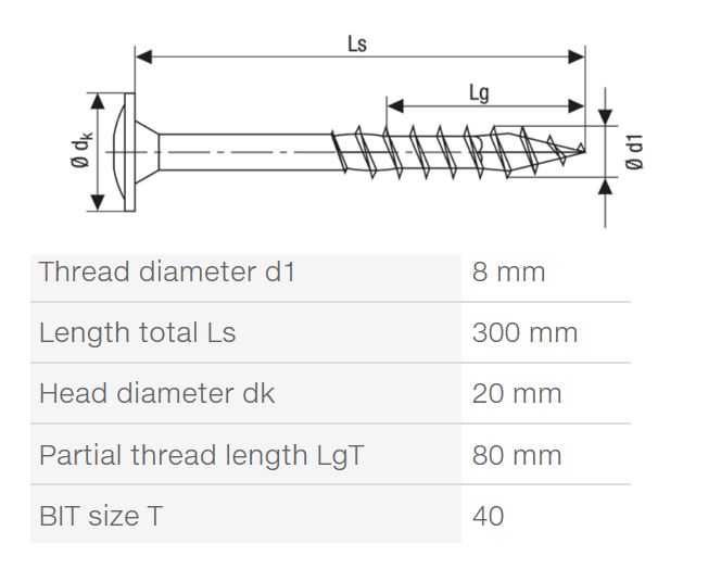 SPAX vis a bois 8x300/80 tete disque TXS, W, 4C, filetage partiel