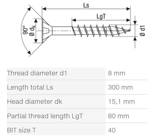 SPAX vis a bois 8x300/80 tete fraisée TXS,W,4C MH, filetage partiel