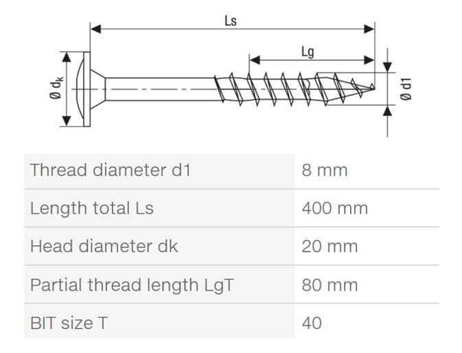 SPAX vis a bois 8x400/80 tete plate TXS, W, 4C, filet partiel