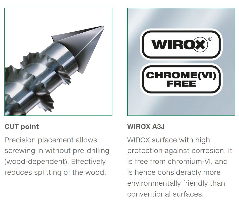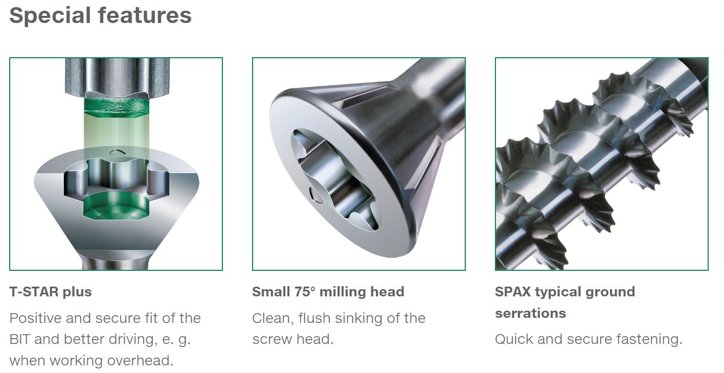 type de meche : T-STAR plus 15. Particulierement adapté aux panneaux MDF. Sans pré-perçage (mais requis pour certains), réduction du risque de déchirement et de bombement du matériau. Pointe CUT avec filetage ondulé pour un vissage facile. Tete spéciale étroite avec un angle de 75° et une gorge de fraisage pour un fraisage propre. Filetage partiel pour un serrage ferme de la piece supérieure. Finition WIROX - résistance a la corrosion multipliée par 20 par rapport aux vis standard. Les avantages ci-dessus combinés a la gorge T-STAR plus. Nous recommandons l’utilisation des meches originales T-STAR plus, assurant une fonction parfaite. Le montage garantit un meilleur centrage et transfert de force, empechant le dérapage lors d’une pression latérale. L’utilisation de meches Torx classiques ne permet pas de tirer pleinement parti des améliorations de la gorge. Utilisé également comme remplacement du confirmat.