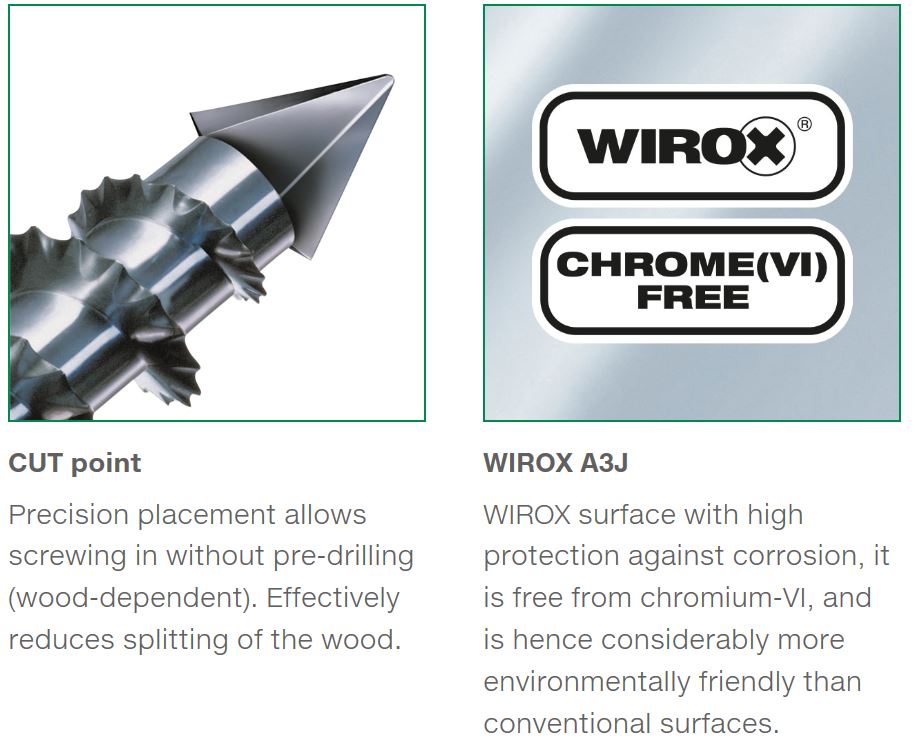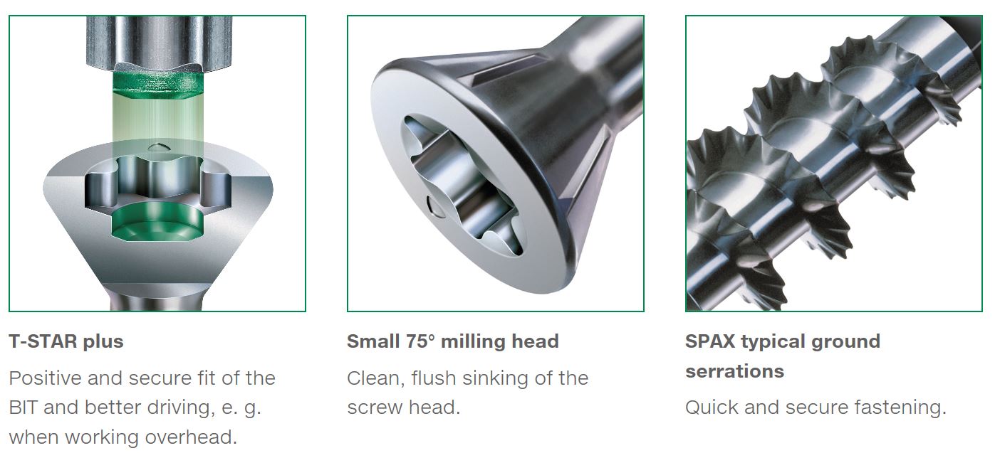 type de meche : T-STAR plus 20. Particulierement adapté aux panneaux MDF. Sans pré-perçage (dans certains cas, le pré-perçage est toutefois nécessaire), réduit le risque de fissuration et de gonflement du matériau. Pointe CUT avec filetage ondulé pour un vissage facile. Tete spéciale étroite avec un angle de 75° et une rainure fraisée pour un fraisage propre. Filetage partiel pour un serrage solide de la partie supérieure. Revetement WIROX - résistance a la corrosion multipliée par 20 par rapport aux vis standard. Les avantages ci-dessus combinés a la rainure T-STAR plus. Nous recommandons l’utilisation des meches T-STAR plus originales pour garantir une fonction parfaite. L’emmanchement assure un meilleur centrage et transfert de force, évitant le dérapage sous pression latérale. L’utilisation de meches Torx standard ne permet pas de tirer pleinement parti des avantages de la rainure améliorée. Utilisé également comme substitut aux confirmats.