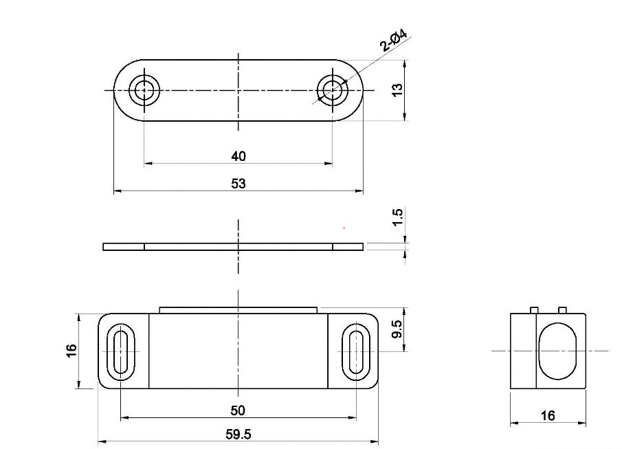 Magnet nábytkový 60x15 mm + contre-plaque. RAL 9010.