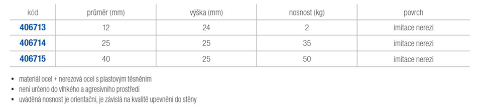 Support de verre ou de miroir. Matériau acier + acier inoxydable avec joint en plastique. Non destiné a un environnement humide et agressif. Capacité de charge 1 pc - 2 kg. La capacité de charge indiquée est indicative, dépend de la qualité de fixation au mur. Filetage M8, diametre du trou percé 8mm. Diametre du support - 12mm. Hauteur du socle y compris le joint - 26mm, hauteur du couvercle y compris le joint - 5,5mm, longueur de la vis - 15,5mm.