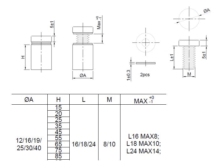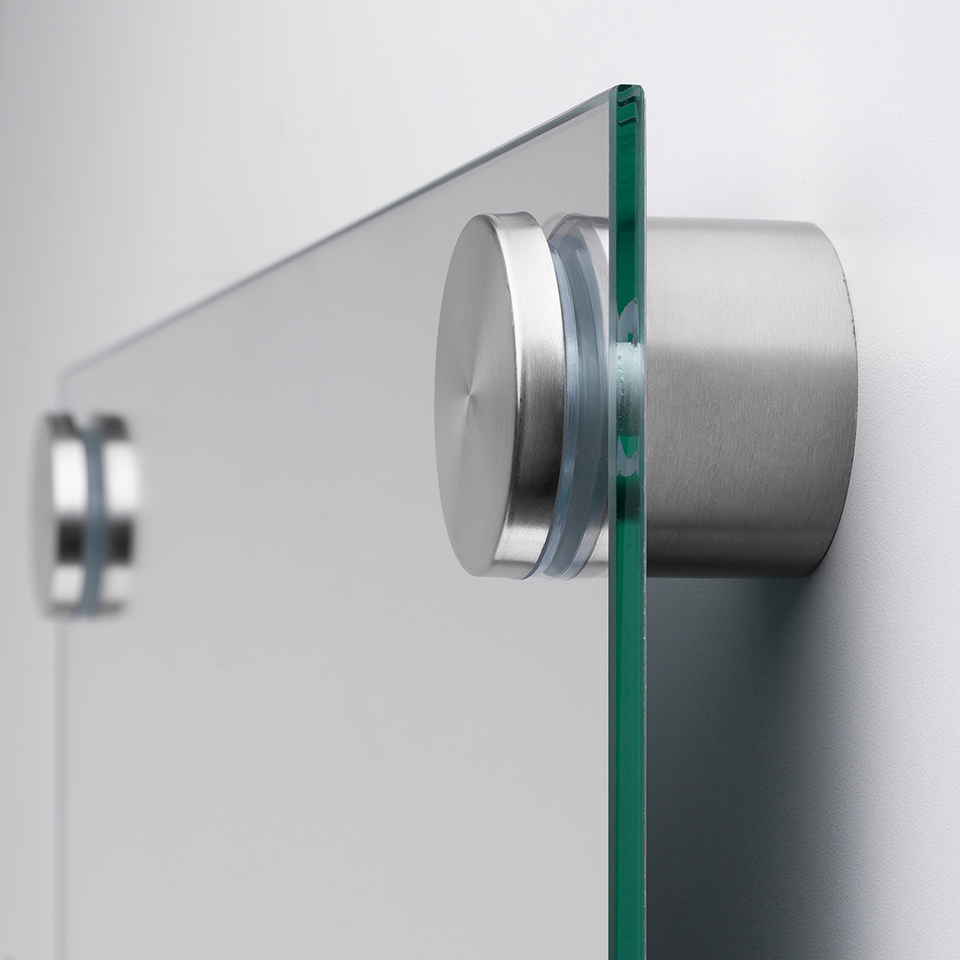 Support de verre ou de miroir. Matériau acier + acier inoxydable avec joint plastique. Non destiné aux environnements humides et agressifs. Capacité de charge 1 pc - 50 kg. La capacité de charge indiquée est indicative, elle dépend de la qualité de la fixation au mur. Filetage M10, diametre du trou percé 10 mm. Diametre du support - 40 mm. Hauteur du socle y compris joint - 26,5 mm, hauteur du couvercle y compris joint - 7,5 mm, longueur de la vis - 23 mm.
