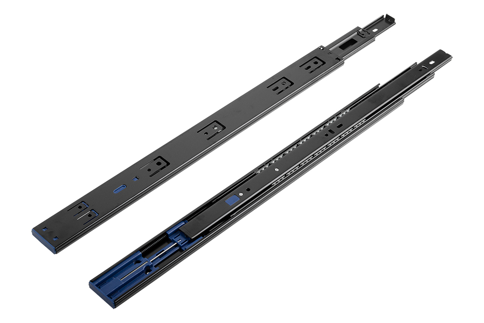 Glissiere a billes a extension totale avec amortisseur de fermeture.