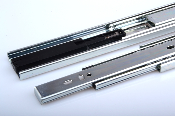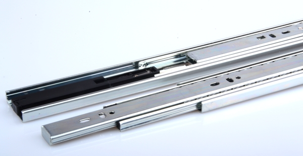 Glissiere a billes a extension totale avec mécanisme d'auto-ouverture. Longueur 550mm. Capacité dynamique pour cette longueur est de 40kg. ATTENTION : il n'est pas possible d'ouvrir de maniere "classique", cela endommagerait le mécanisme (casse du cran) et le tiroir ne resterait pas fermé.