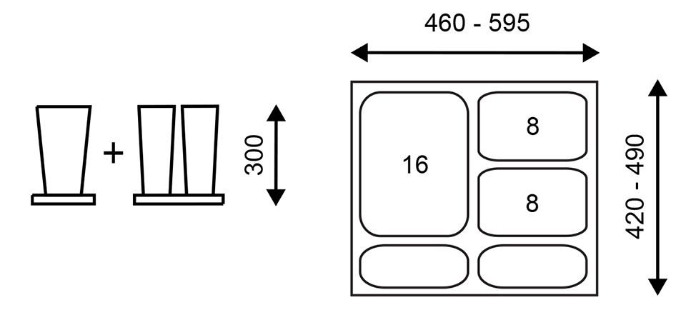 StrongBins trieur 1x16 + 2x8 l inséré dans tiroir 600 mm, anthracite