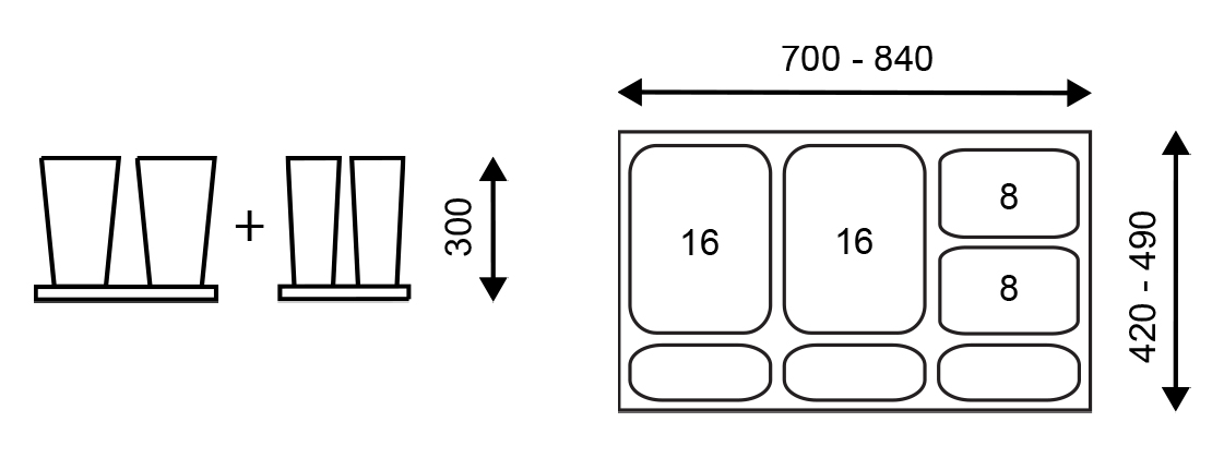 StrongBins trieur 2x16 + 2x8 l inséré dans tiroir 800 - 900 mm, anthracite