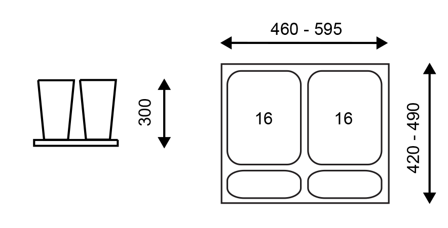 StrongBins trieur 2x16 l insert pour tiroir 600 mm, anthracite