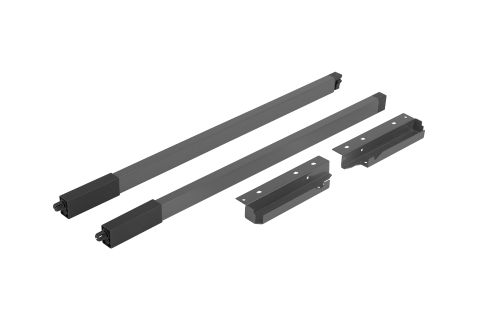 Ensemble de relings carrés H140, longueur 500mm couleur titane (gris argenté). L'ensemble comprend des fixations arriere H140 pour la fixation du reling, reling carré, avec fixations frontales pour vis a bois et pour cheville