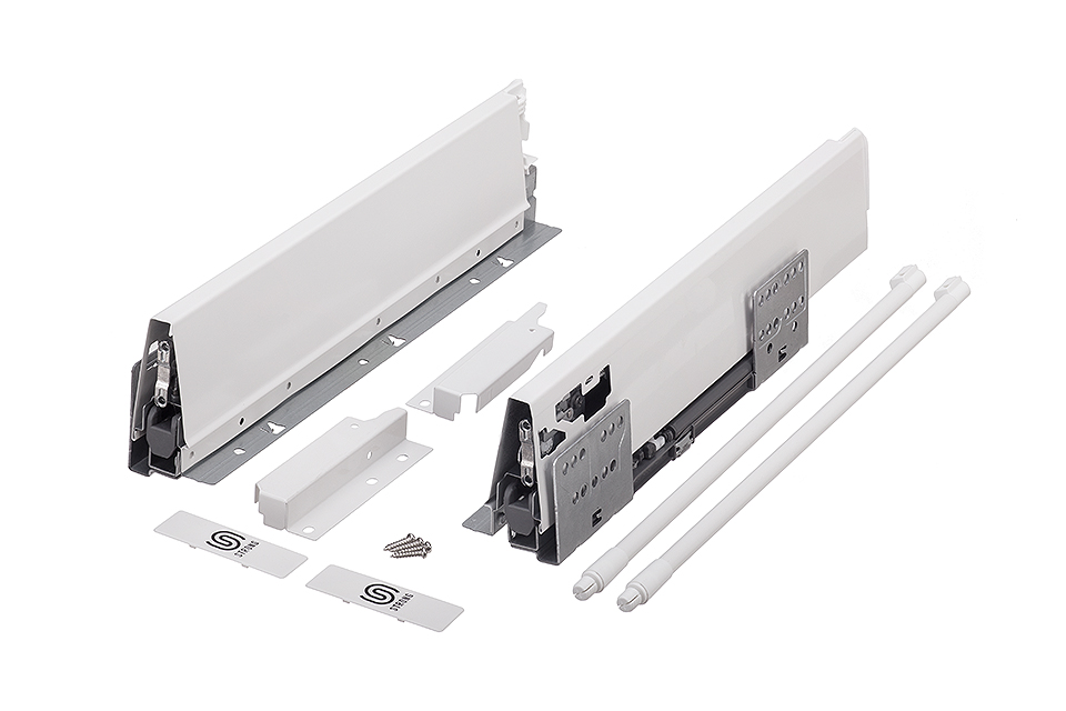 Tiroir coulissant avec amortisseur et flanc creux, incluant 1 paire de relings. Longueur 270mm, hauteur 204(225mm). Capacité de charge jusqu’a 35kg. Couleur blanche. Tout le nécessaire pour assembler un tiroir avant est inclus dans ce kit. Pour un tiroir intérieur, il est nécessaire de commander séparément le panneau avant.
