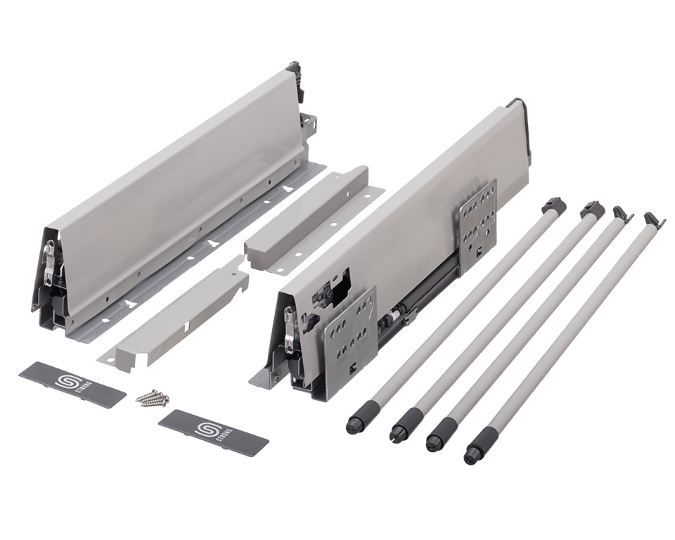 Tiroir coulissant avec amortisseur et côté creux, y compris 2 paires de relings. Longueur 400 mm, hauteur 204(225 mm). Capacité de charge jusqu'a 35 kg. Couleur grise. Tout le nécessaire pour assembler un tiroir avant dans cet ensemble. Pour le tiroir intérieur, il est nécessaire de commander séparément le panneau avant en fonction de la largeur du corps.