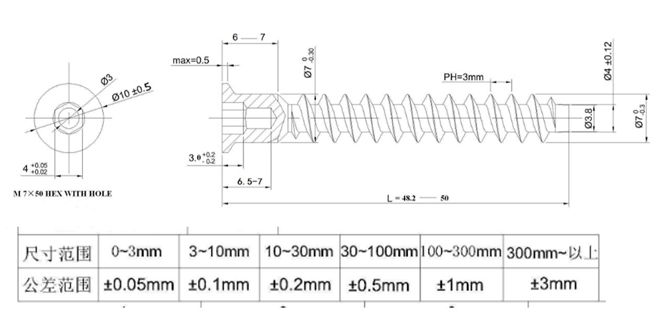 Dimensions : pr.= 7 mm, L = 50