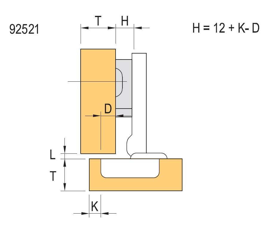 Závěs mini naložený na vis a bois + sous-couche Angle d'ouverture 95°