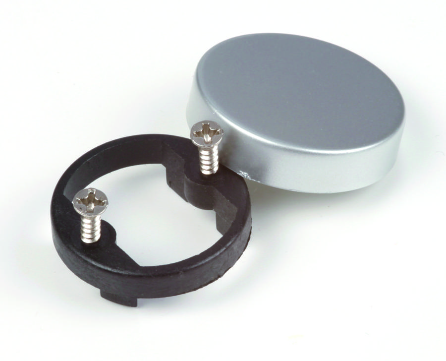 Cache-vis nickel mat pour charnieres sur verre 198893 et 198894, y compris anneau d'installation et vis a bois.