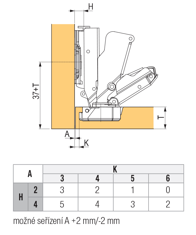Charniere KLIP avec angle d'ouverture de 165° a vis a bois avec amortissement intégré. Angle d'ouverture 110°. Entraxe des vis 45 mm et 9,5 mm du centre du bol. Bol 35 mm. Réglage de l'écart entre la porte et le corps par excentrique. Montage et démontage des portes sur le corps sans outil. Rondelles recommandées : H2 vis a bois 92592T, H2 Euro 92593T.