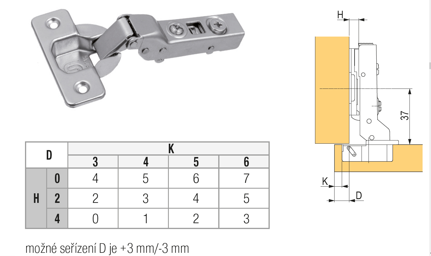 Charniere KLIP semi-affleurante vis a bois SANS amortissement comme contre-pôle a l'amorti 92581T pour portes petites. Angle d'ouverture 110°. Espacement des vis 45mm et 9,5mm du centre du bol. Bol 35mm. Réglage du jeu entre la porte et le corps de meuble via excentrique. Montage et démontage de la porte sur le corps sans outil. Rondelles recommandées : H0 vis 92590T, H0 Euro 92591T.