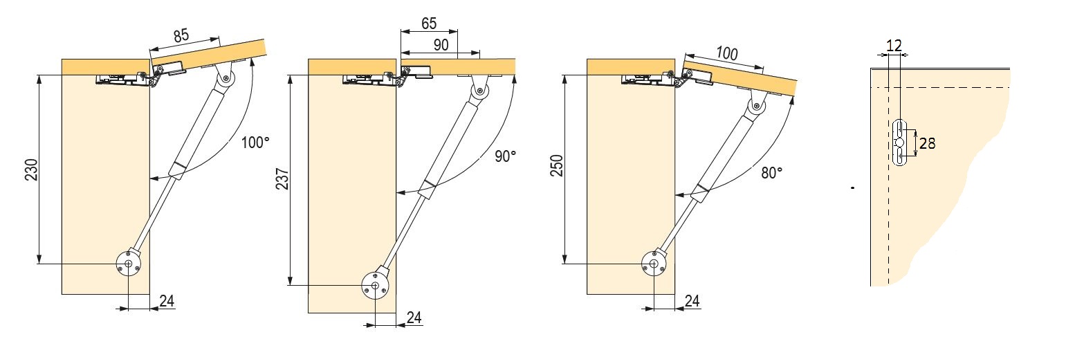Vérin automatique gaz-liquide 100N avec poignées. Couleur blanche. Eventuellement, pour cadre alu uniquement, ajouter la fixation 276001