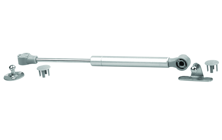 Vérin a gaz pour porte, couleur gris argenté. Avec fonction de positionnement - le piston maintient la porte ouverte a la position ou vous la lâchez lors de l'ouverture.