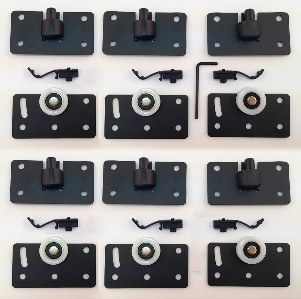 Ensemble de quincaillerie coulissante pour portes coulissantes d'armoire, capacité de charge 30 kg/porte, ensemble pour trois portes. Guidages disponibles pour longueurs 1,2 m, 2 m et 3 m. L'ensemble comprend la quincaillerie pour trois vantaux - 6x chariot supérieur, 6x chariot inférieur, 4x frein, 1x clé Allen.