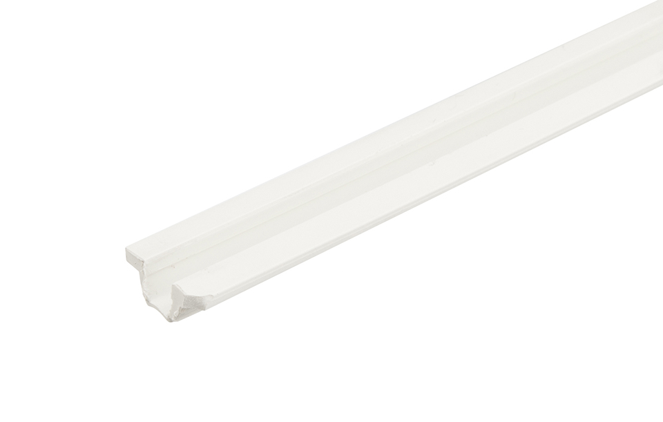 Plastique pour guidage de type gala. Longueur : 1,8 m Décor : blanc Matériau : plastique Utilisation : porte coulissante d’armoire. Un profil en aluminium 87315 - 2m ou 87314 - 3m peut également etre utilisé comme guidage supérieur et guidage inférieur.