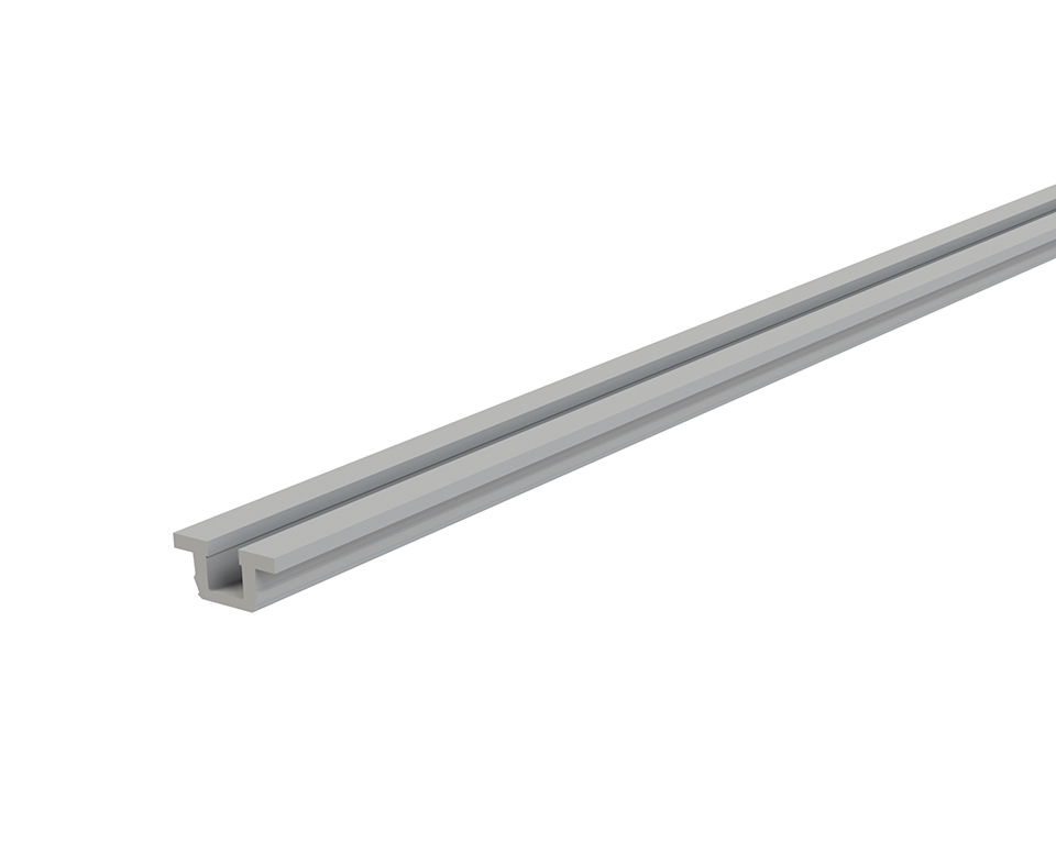 Guidage en plastique de type gala. Longueur : 1 m Décor : gris Matériau : plastique Utilisation : porte coulissante d’armoire. Un profil en aluminium 87315 - 2m ou 87314 - 3m peut également etre utilisé comme guidage supérieur et guidage inférieur.