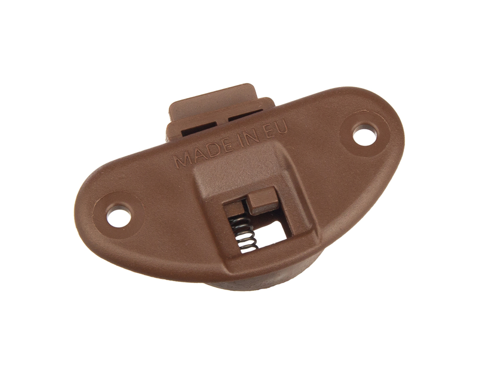 Quincaillerie en plastique de type unipos. Décor : brun Matériau : plastique Utilisation : porte coulissante d'armoire Un profil en aluminium 87315 - 2m ou 87314 - 3m peut également etre utilisé comme guidage supérieur et guidage inférieur.
