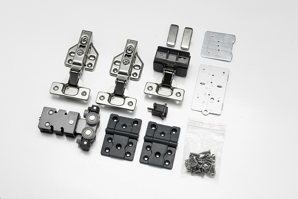 Inclus : charnieres latérales, gabarit de perçage et visserie.