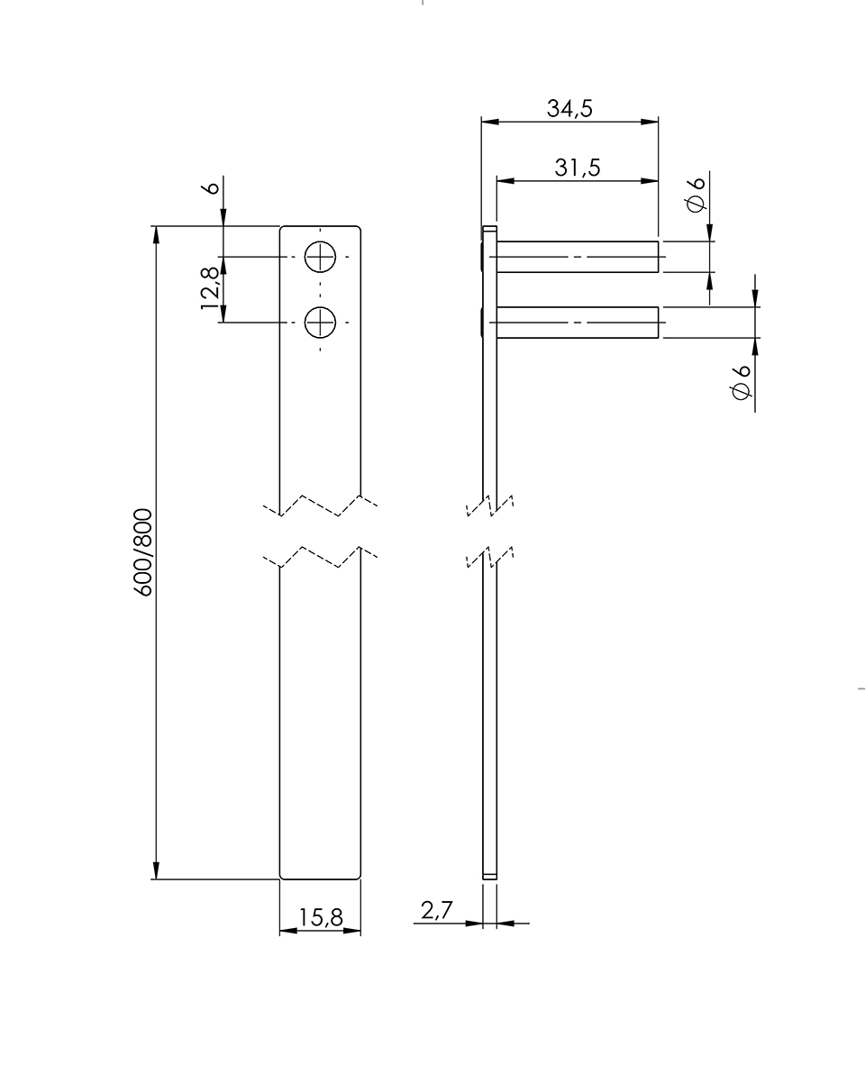 STRONG Barre pour verrou de conteneur avec cylindre interchangeable, longueur 800 mm