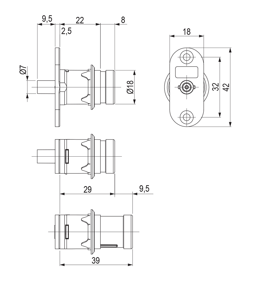 StrongLocks Serrure baionnette pour cylindre interchangeable 18mm droit