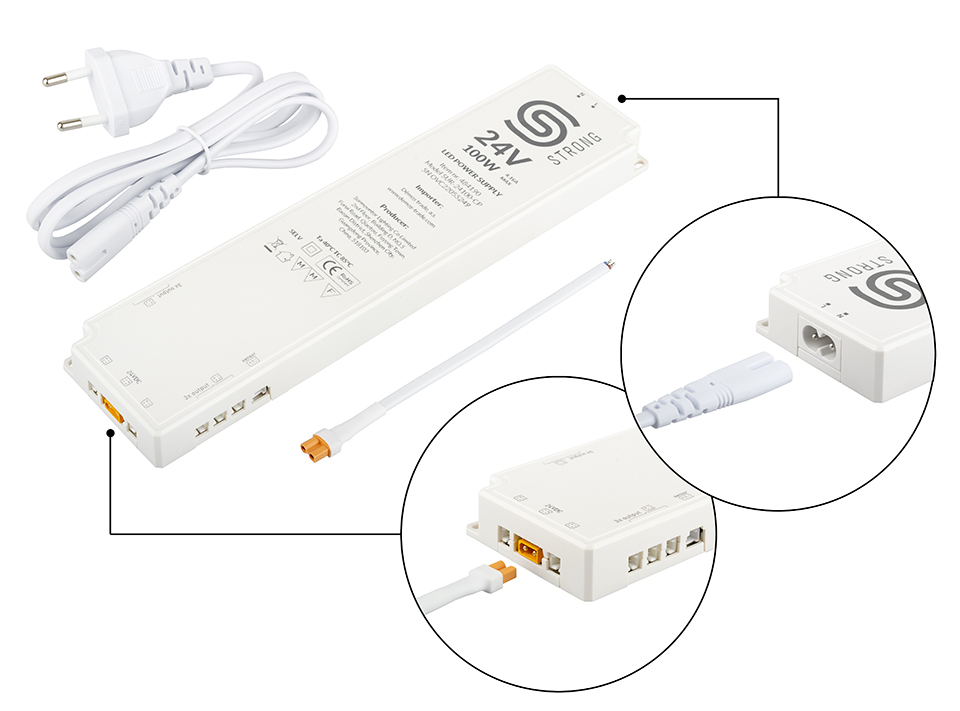 Les alimentations StrongLumio avec répartiteur intégré et prise 3PIN pour la connexion de capteur/interrupteur ont pour objectif de simplifier le montage de l’éclairage dans le mobilier, de réduire le temps d’installation et ainsi de rendre globalement plus agréable le travail avec les lumieres de la marque StrongLumio.
