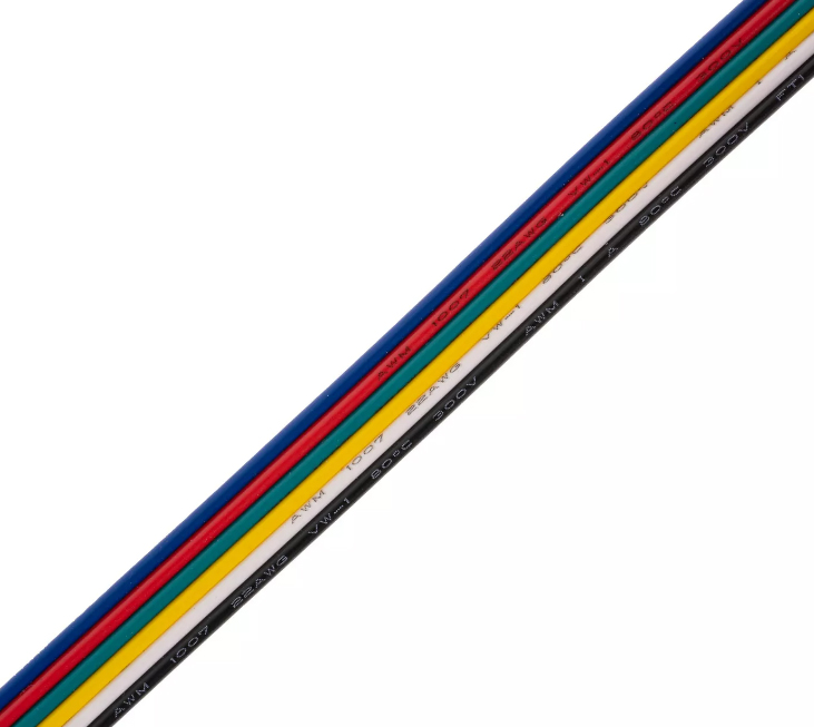 Convient pour les bandes RGBCCT. Les câbles codés par couleur facilitent le raccordement de la bande au contrôleur et la connexion des bandes entre elles. En cas de rupture de stock, il est possible de remplacer par : 2x 367822 StrongLumio câble plat CCT (trois fils) 1m ou 1x 276497 StrongLumio câble plat RGB (quatre fils) 1m + 347904 StrongLumio double câble 2x0,5mm2 20AWG rouge-noir 1m. Branchement recommandé : noir sur + bande ou contrôleur, rouge sur - R (RED = rouge) bande ou contrôleur, vert sur - G (GREEN = vert) bande ou contrôleur, bleu sur - B (BLUE = bleu) bande ou contrôleur, blanc sur - CW (COOL WHITE = blanc froid) bande ou contrôleur, jaune sur - WW (WARM WHITE = blanc chaud) bande ou contrôleur. Dimensions des câbles : 6× 0,3 mm2 Longueur recommandée du câble du contrôleur a la bande RGB : max. 5 metres. Connexion recommandée de la bande RGBCCT a ce câble : maximum 5 metres de bande RGBCCT 14,4W/m