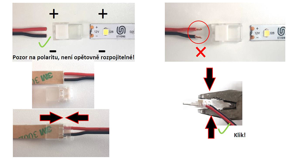 StrongLumio connecteur pour bande LED 8mm/câble, a clipser