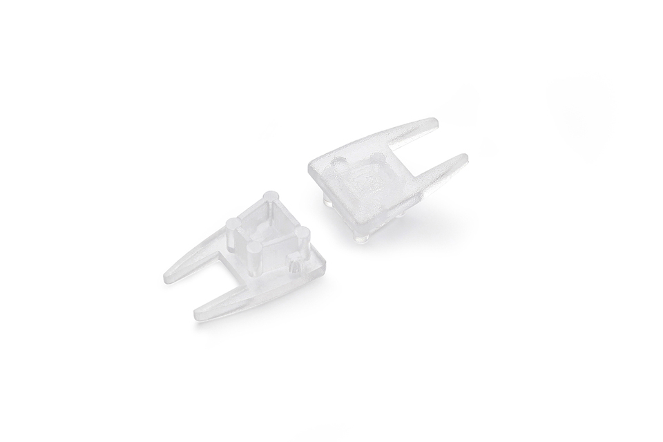 Emballage : paire. Utilisé pour la finition des moulures LED MIKRO. version pour utilisation sans étagere en verre. La longueur de l'embout prolonge la longueur de la moulure de 2,2 mm de chaque côté. Matériau : plastique transparent.
