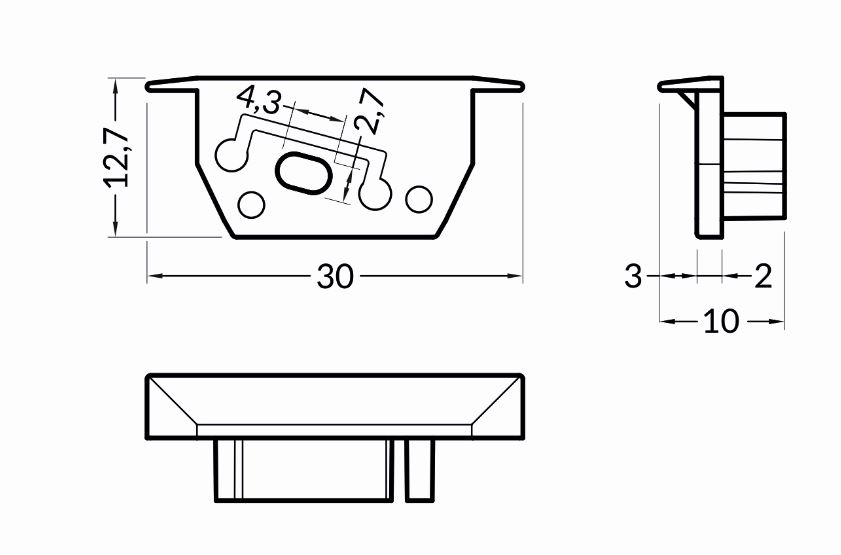 La longueur de l'embout prolonge la longueur de la moulure de 3 mm de chaque côté sur la partie supérieure et de 2 mm dans la partie usinée.