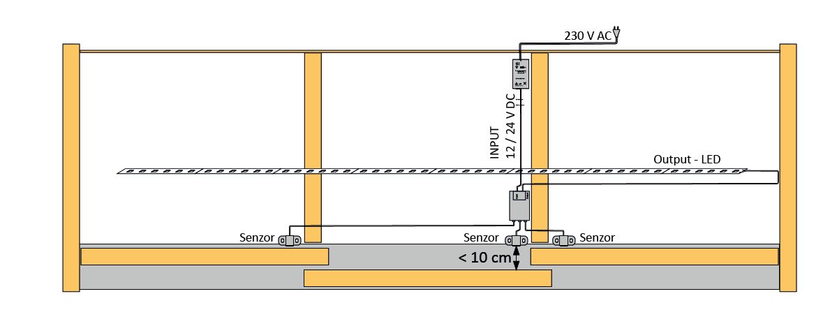 Utilisé pour commander l’éclairage a l’ouverture de la porte. L’éclairage s’allume a l’ouverture de la porte / en libérant l’espace devant l’interrupteur, il s’éteint a la fermeture / couverture.