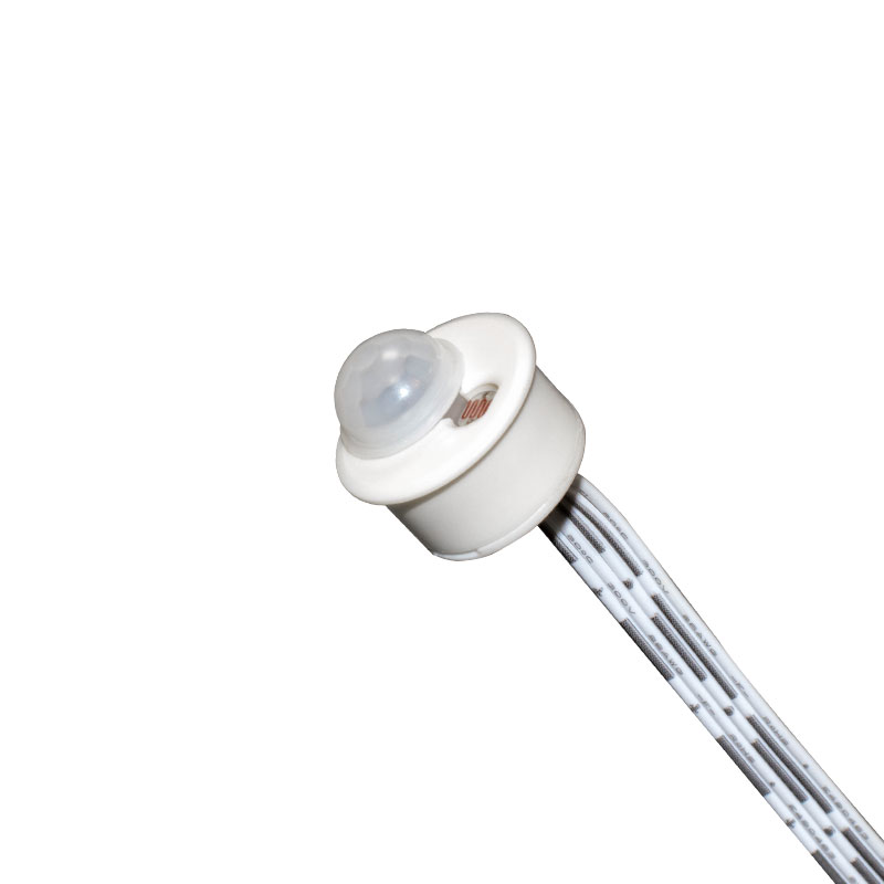 Capteur de mouvement avec capteur crépusculaire intégré. Sensibilité du réglage du capteur crépusculaire : 2 - 60 lux. Durée d'éclairage réglable : 6 - 70 secondes. Possibilités de connexion et d'utilisation voir le manuel d'installation ci-dessous. Parametres techniques : Tension : 12 V/24 V. Dimensions de la lentille : 20 x 11 mm. Espace d'installation : 20 x 11 mm. Portée de détection : 2 m. Courant maximal : 4 A. Puissance commutée maximale : 48 W (12 V), 96 W (24 V). Type de connecteur : Mini. Longueur des câbles : 1 m d'alimentation + 1 m de sortie.