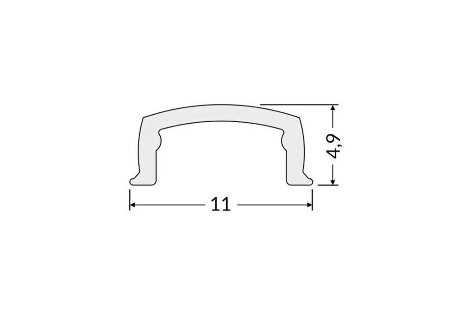 Moulure de recouvrement translucide. Utilisée pour couvrir les rubans led dans le profil Pen. Matériau – plastique. Clipsable. Transmission lumineuse 93 %.