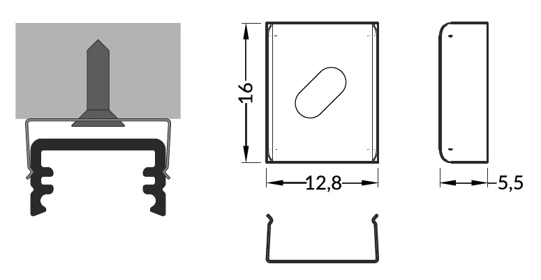 Utilisé pour la fixation des profils LED Slim 8/Smart 10. Matériau : acier inoxydable. Utilisation : 1 - 2 paires/1 m de profil.