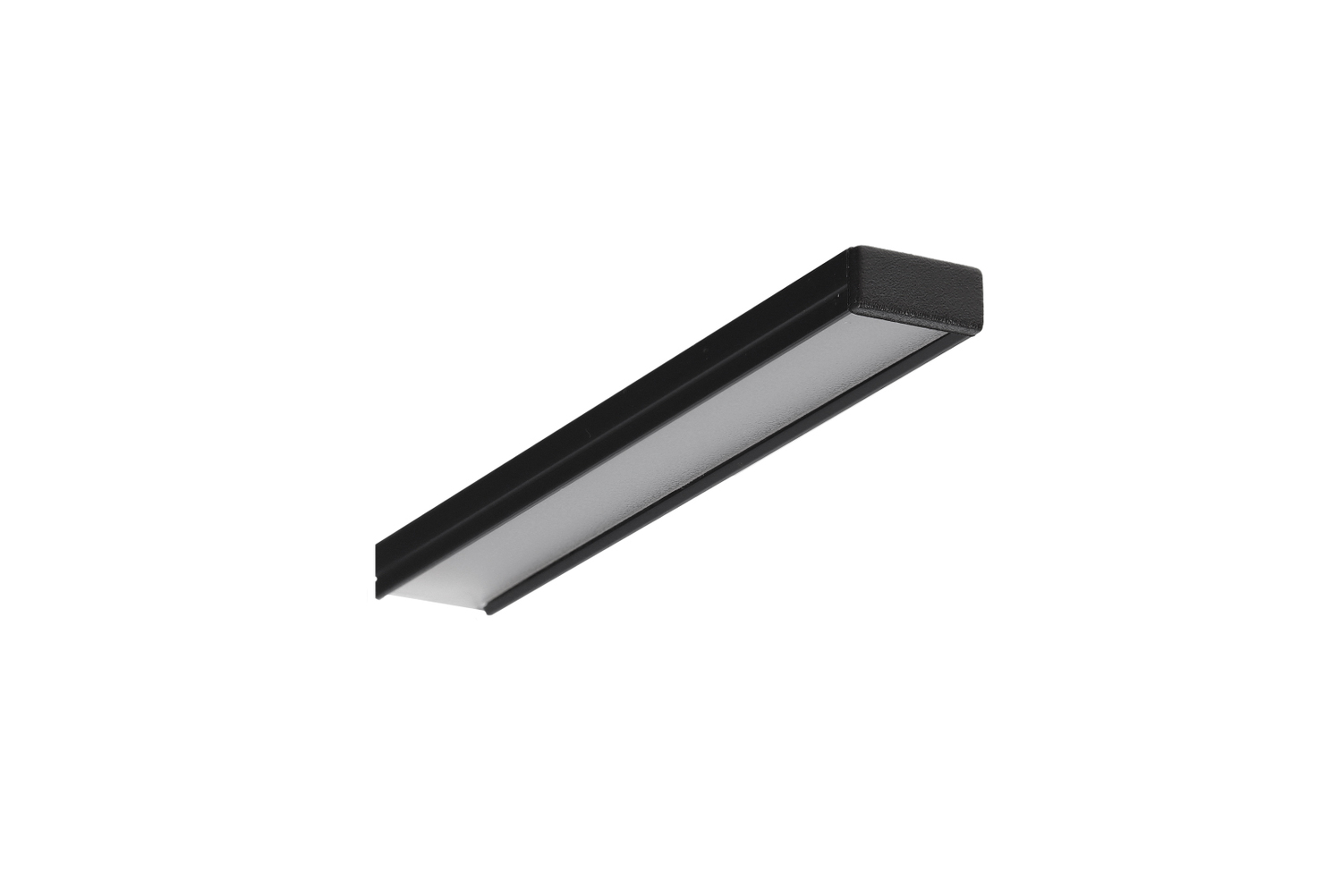 Profil en aluminium pour montage en surface. Finition de surface - anodisation noire. Fixation par agrafes, collage ou a l’aide de vis a bois. Conçu pour des bandes LED d’une largeur maximale de 12 mm. Longueur 2000 mm. Moulures de couverture et embouts voir assortiment associé ci-dessous.