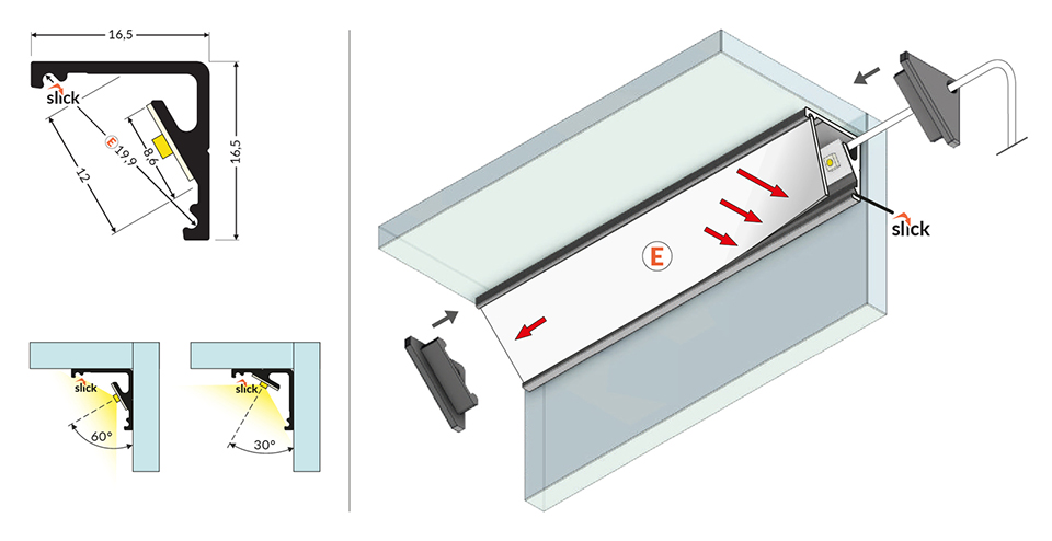 Bandes LED jusqu'a 12 mm de largeur, bonne dissipation thermique.
