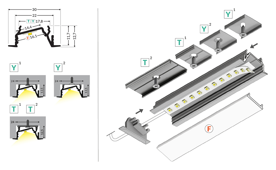StrongLumio profilé LED Diagonal 14 2000mm argenté anodisé