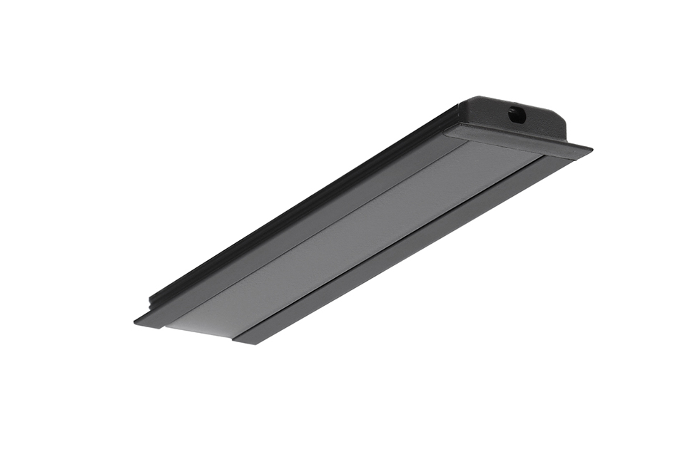 Profil en aluminium a encastrer. Dimensions : 4050 x 24 x 7 mm. Fraisage 18 x 6 mm. Finition – anodisation noire. Fixation par agrafes, collage ou vis a bois. Conçu pour des bandes LED d’une largeur maximale de 10 mm. Longueur 4050 mm. Moulures de couverture et embouts voir assortiment associé ci-dessous. Version avec éclairage latéral voir alternatives ci-dessous.