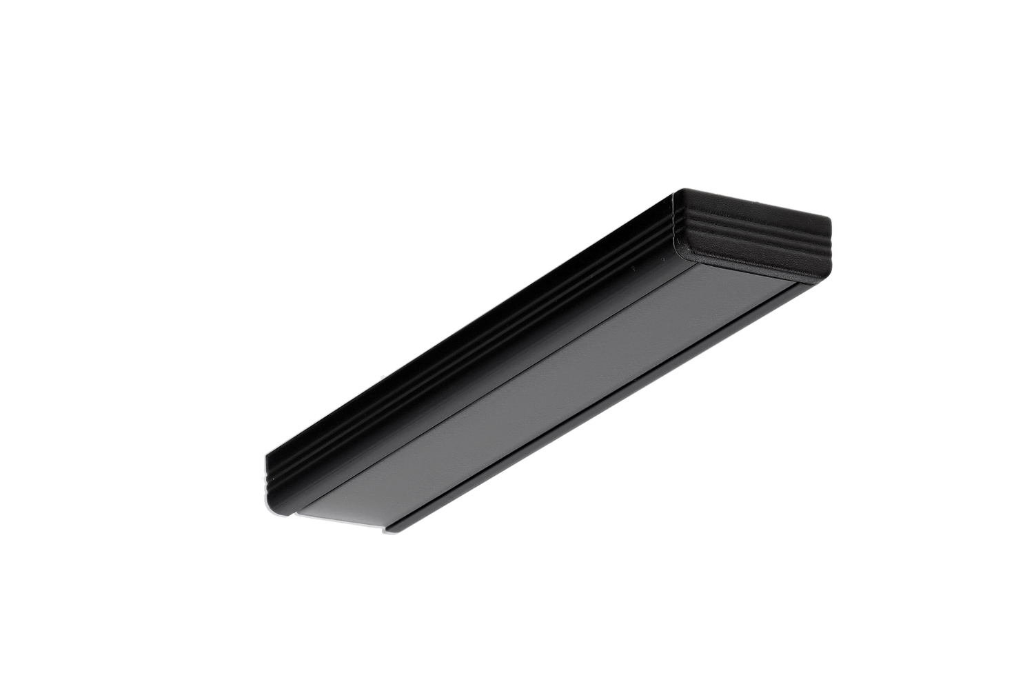 Profil en aluminium pour montage en surface. Finition - anodisé noir. Fixation avec agrafes, collage ou a l’aide de vis a bois. Conçu pour des bandes LED d'une largeur maximale de 10 mm. Longueur 4050 mm. Moulures de protection et embouts voir assortiment associé ci-dessous.